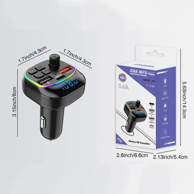 M54 Car MP3 Player 3.4A / 40W / QC3.0 / PD 20W