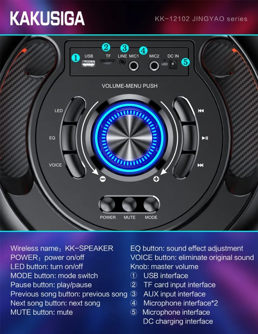 La Jingyao KK-12102 est parfaite pour transformer vos soirées, événements et animations en une expérience sonore et visuelle inoubliable.