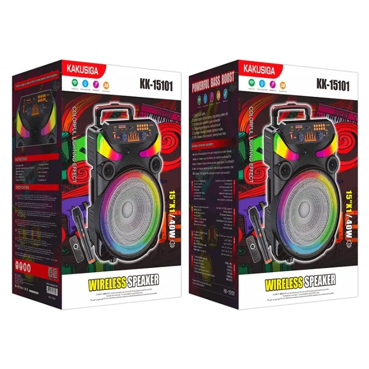 Enceinte Trolley Bluetooth KAKUSIGA KK-15101 – 40W Puissance, 15″ & Roulettes de Transport