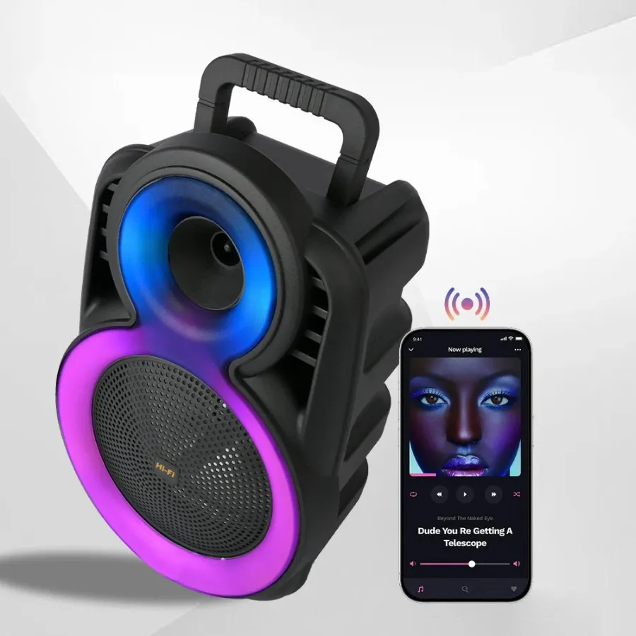 Compatible avec Bluetooth 5.3, USB, carte TF, FM, TWS et entrĂ©e micro jack, elle s’adapte Ă  tous vos besoins musicaux.