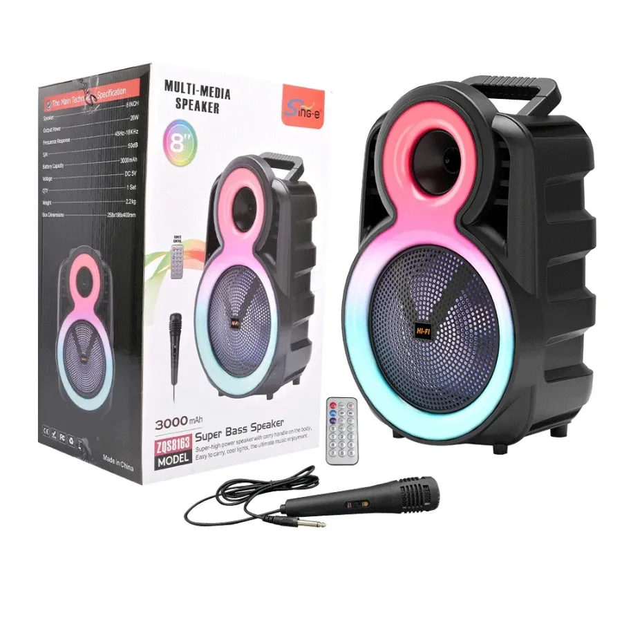 Parce qu’elle combine puissance, style et polyvalence. Que ce soit pour une fĂȘte entre amis, une animation familiale ou un karaokĂ© improvisĂ©, la ZQS-8163 rĂ©pond prĂ©sent. Compacte et facile Ă  transporter, elle devient votre alliĂ©e pour mettre de l’ambiance partout.