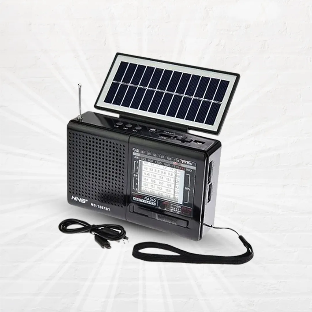 La Radio Solaire NS-1587BT est conçue pour offrir autonomie, praticité et connectivité moderne. Grâce à son panneau solaire intégré, elle peut être rechargée sans électricité, ce qui en fait un choix idéal pour les pannes de courant, voyages, camping ou usage quotidien.