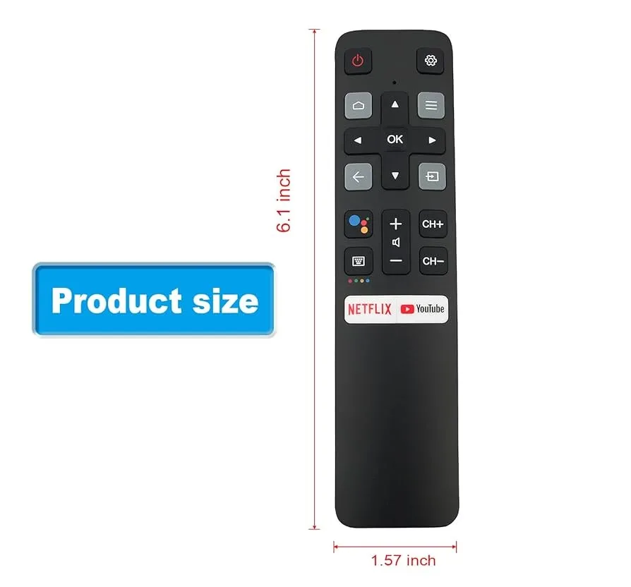 Idéale en remplacement de la télécommande d’origine ou comme télécommande supplémentaire, elle vous permet de gérer facilement vos chaînes, ajuster le volume et accéder aux réglages de votre TV TCL.